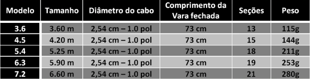 Tamanho: 2.7m 3.6m / 4.5m / 5.4m / 6.3m / 7.2m